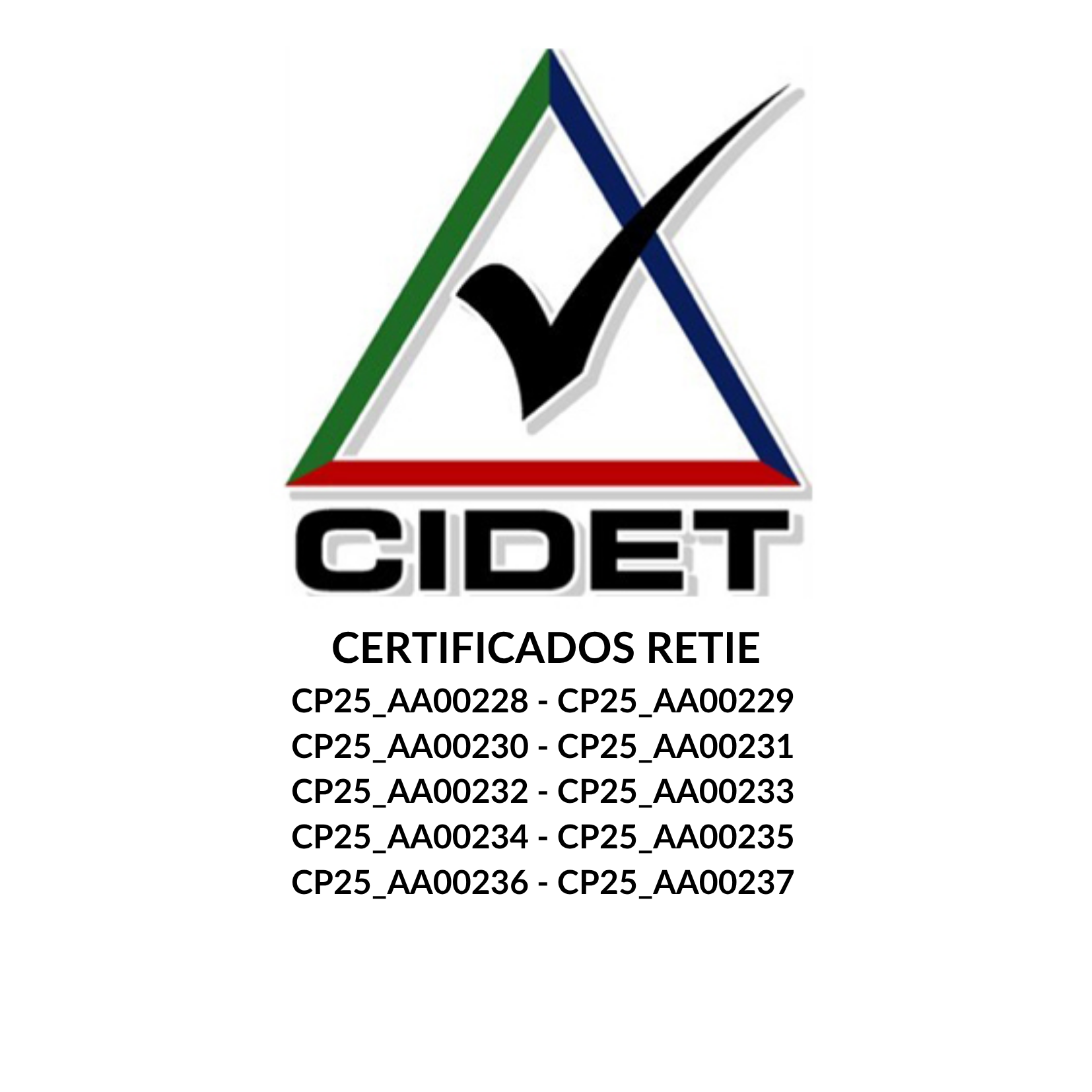 - Certificación : 07633 Conforme a normas técnicas aplicables y RETIE.